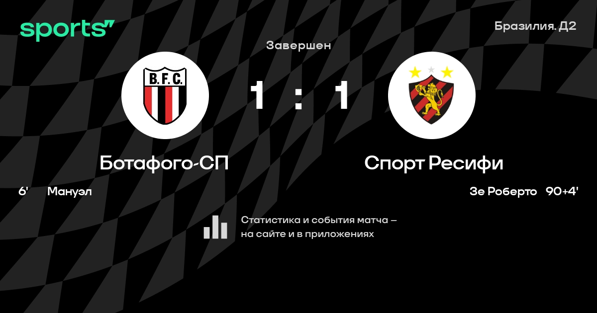 Ботафого-СП – Спорт Ресифи: Спорт Ресифи забивает в 7 последних матчах против этого соперника