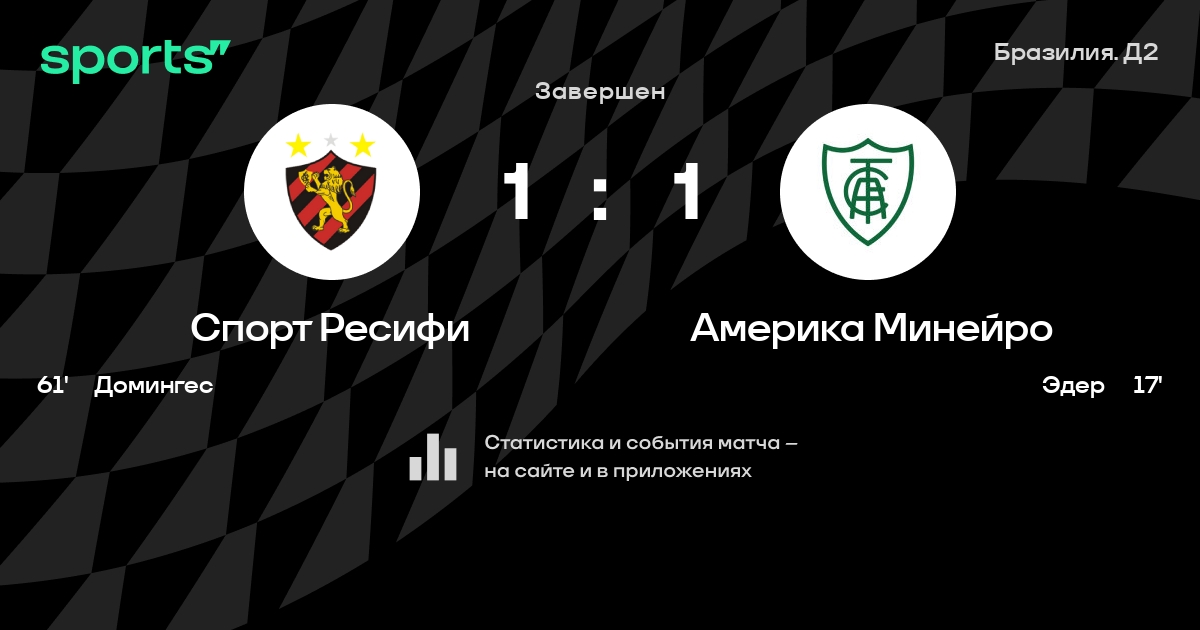 Спорт Ресифи – Америка Минейро: Америка Минейро побеждает в 3 последних очных матчах в гостях