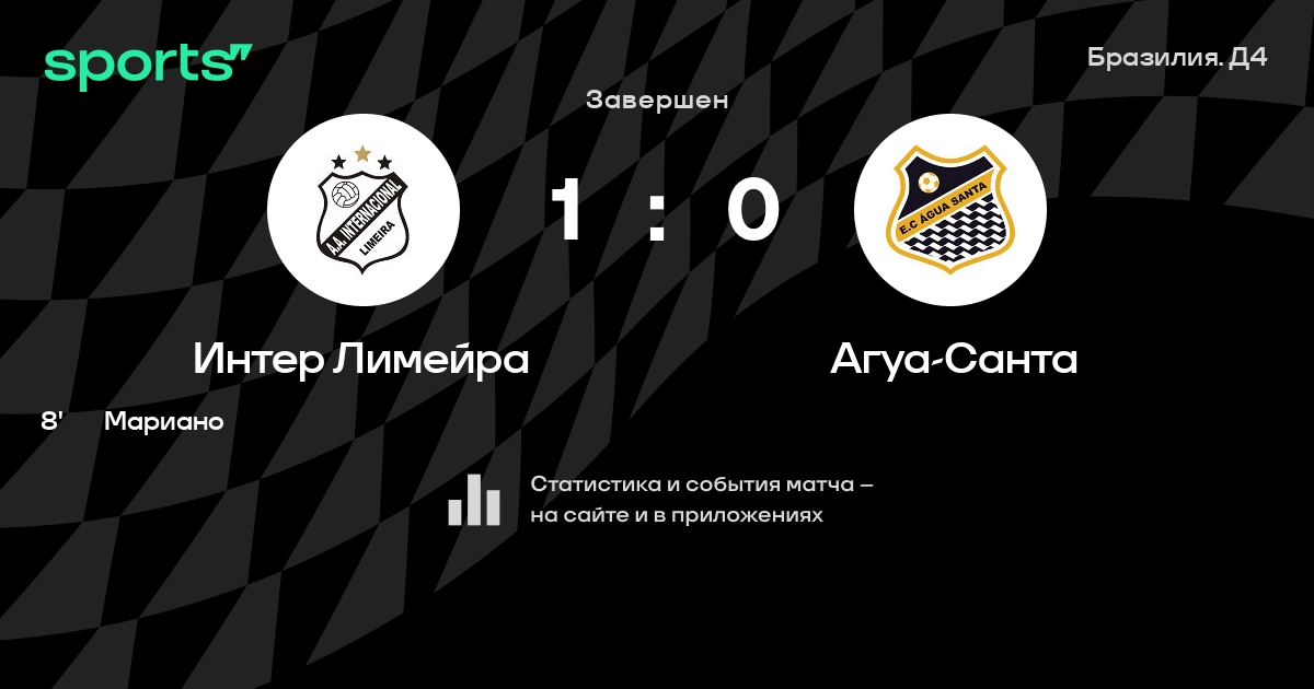 Интер Лимейра – Агуа-Санта: Агуа-Санта забивает в 5 последних матчах против этого соперника