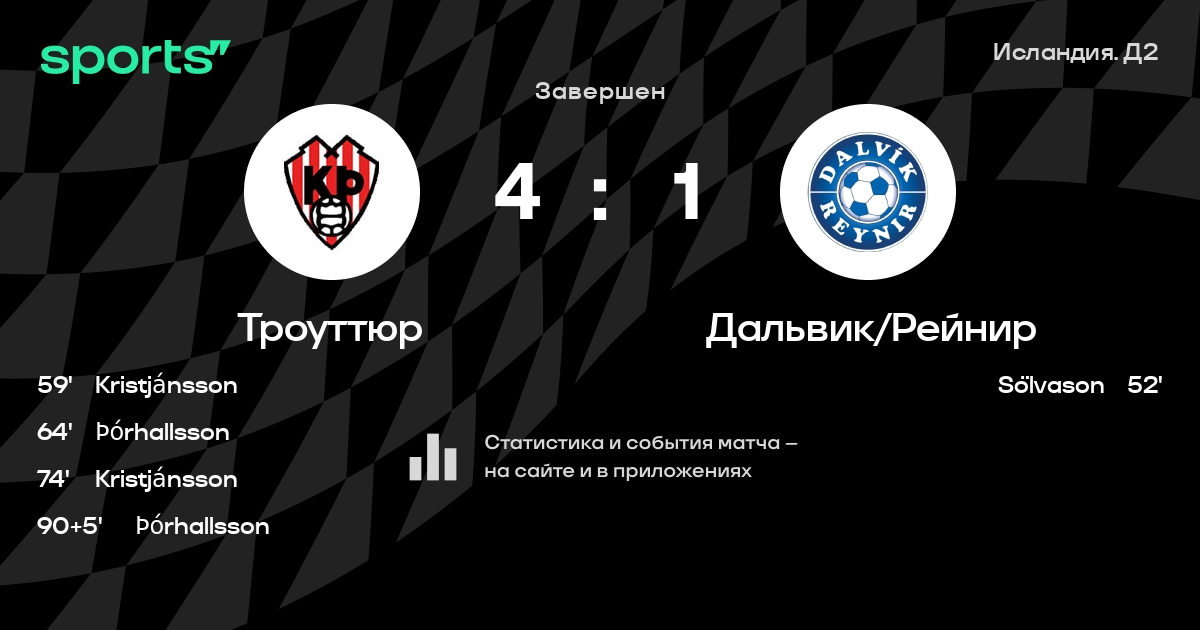 Lalić - Jónasson, Björnsson - Freyr Jónsson, Zambrano Martin, Dagbjartur Búi Davíðsson, Бисси, Gunnlaugur Rafn Ingvarsson, Stojanovic, López Laguna - SölvasonЗапасные: Maronsson Olsen, Fannar Óskarsson, Jónsson, Bjarnason, Sævaldsson, Þórðarson, Sigurjónsson