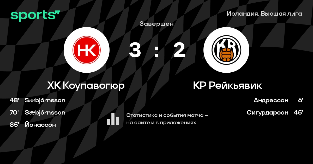 Результат прошлой игры в турнире «Высшая лига»: Вестри – КР Рейкьявик 2:0. После 18 туров КР Рейкьявик набирает 18 очков и занимает 9 место в турнире. Лучший бомбардир команды – Бенони Андрессон: он забил 10 в 19 матчах. В последних 5 играх КР Рейкьявик забивает 5 голов. В последних 5 играх КР Рейкьявик пропускает 9 голов.