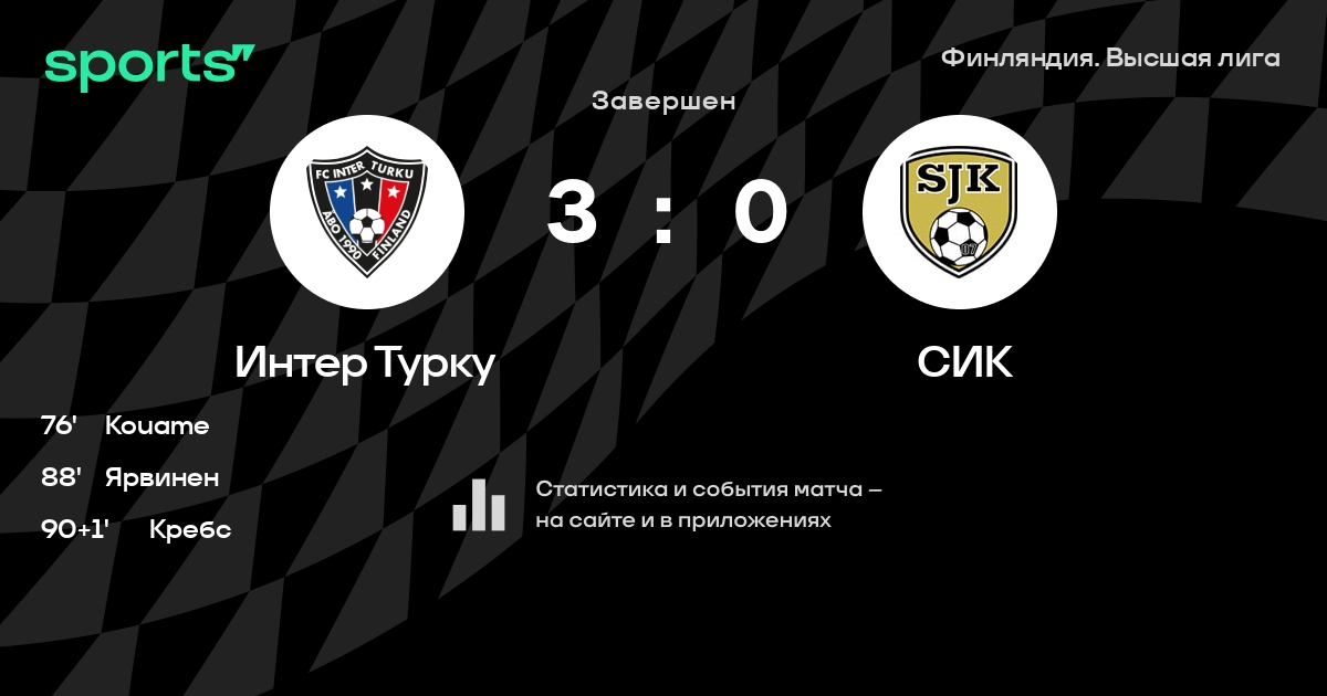 Интер Турку – СИК: СИК забивает в 4 последних матчах против этого соперника