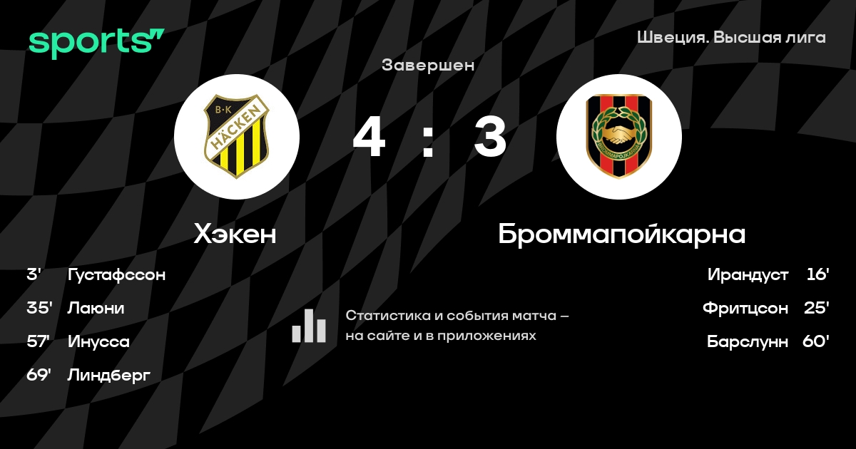 Хэкен – Броммапойкарна: Броммапойкарна забивает в 3 последних матчах против этого соперника