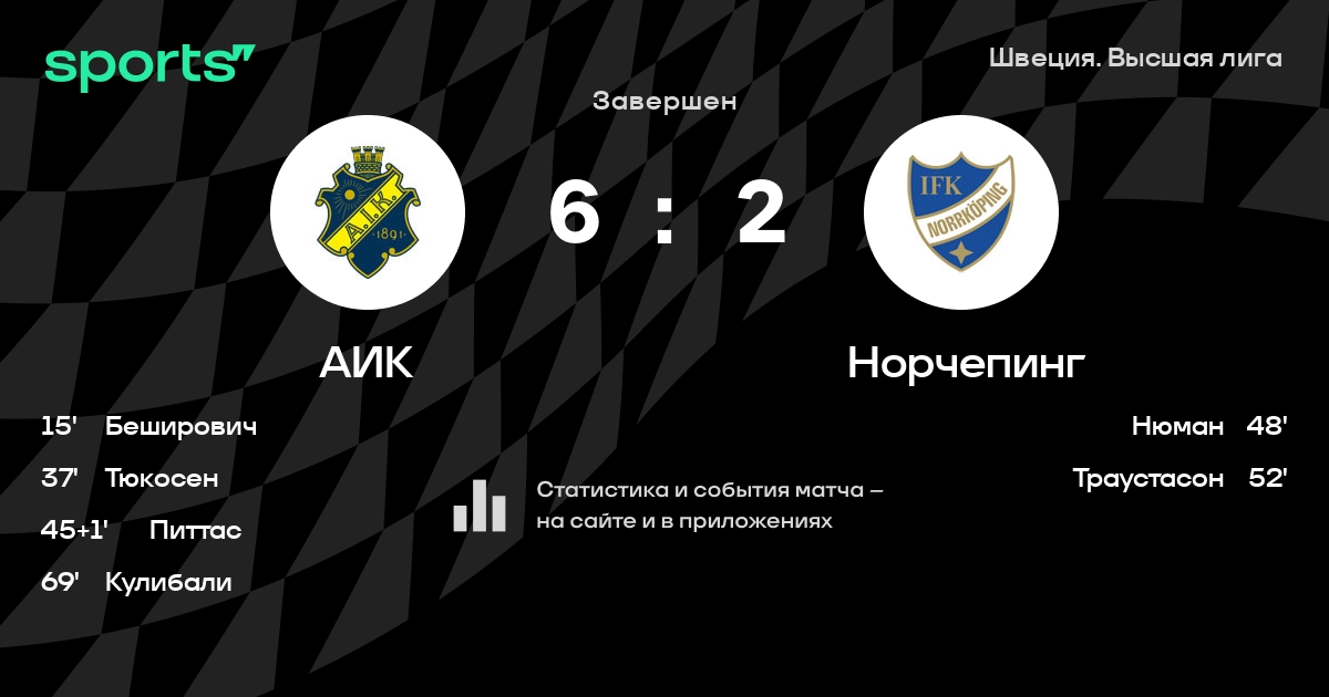 АИК – Норчепинг: Норчепинг забивает в 4 последних матчах против этого соперника