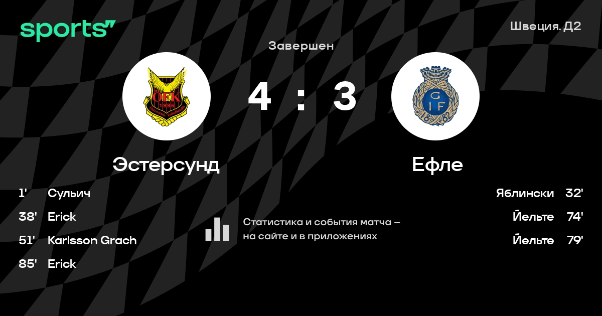 Эстерсунд – Ефле: Ефле не проигрывает в 5 из 6 последних матчей против этого соперника