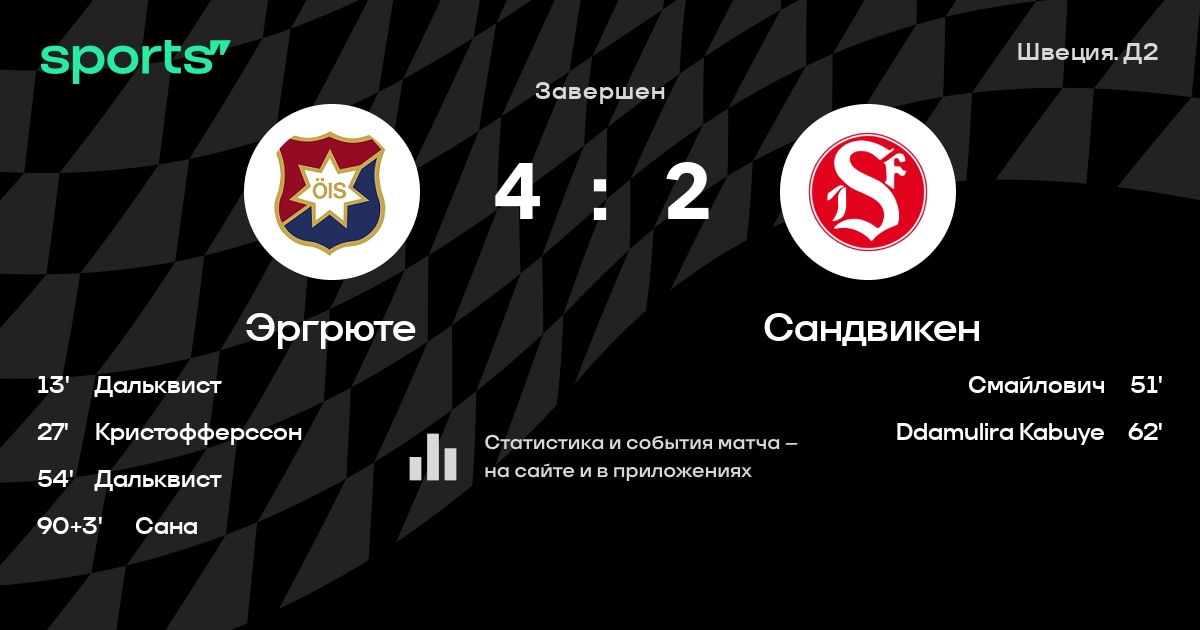 Gustafsson - Файе, Дюрестам, Azulay, Андреассон - Муянич, Vindehall, Дальквист, Сана, Kenndal - КристофферссонЗапасные: Rahm, Styffe, Svensson, Paulson, Abukar, Беркрот, Трпчевски