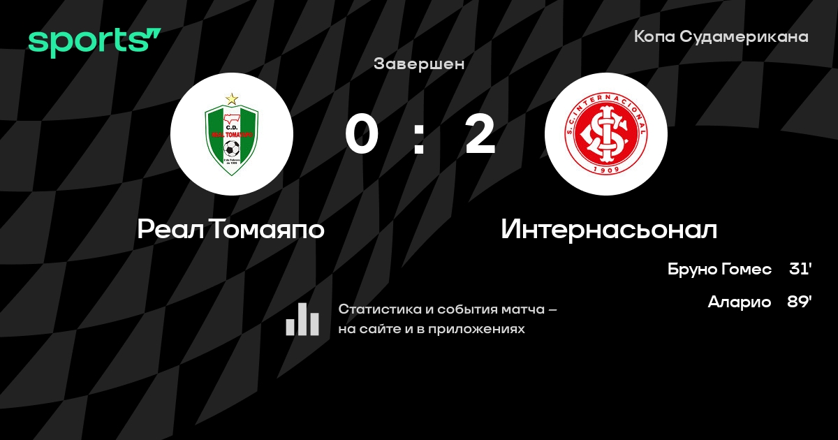 Реал Томаяпо – Интернасьонал: коэффициенты