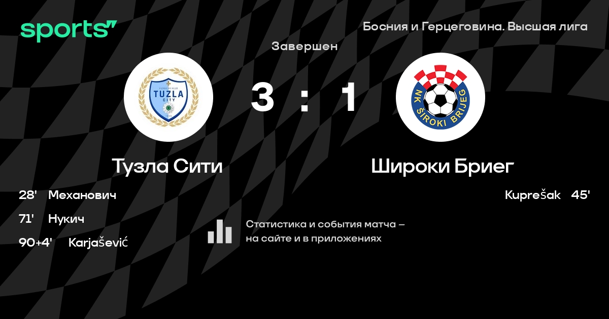 Тузла Сити – Широки Бриег: Широки Бриег забивает в 5 из 7 последних матчей против этого соперника