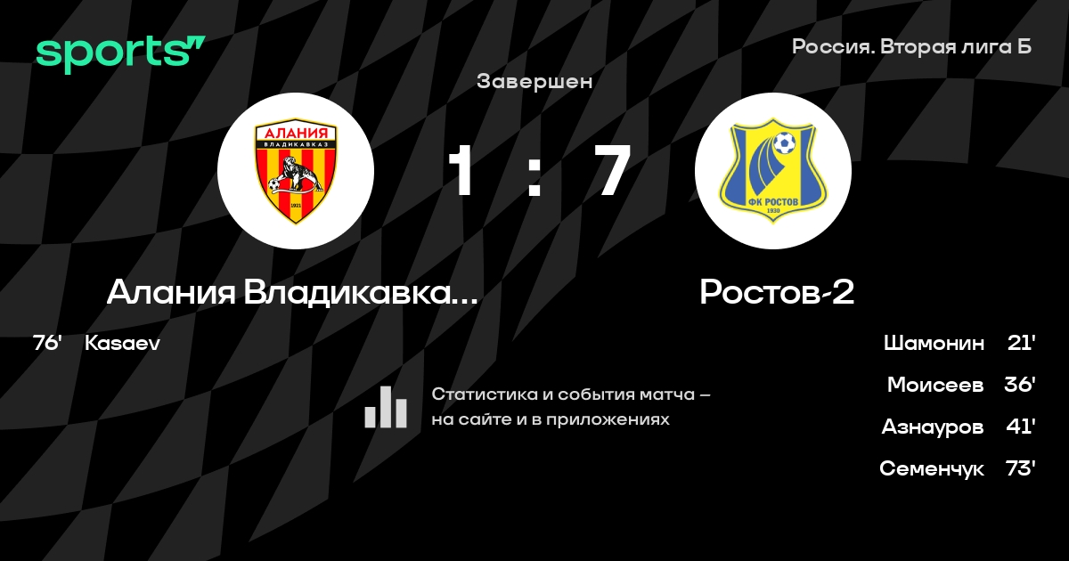 Алания Владикавказ-2 не выигрывает в 9 последних матчах