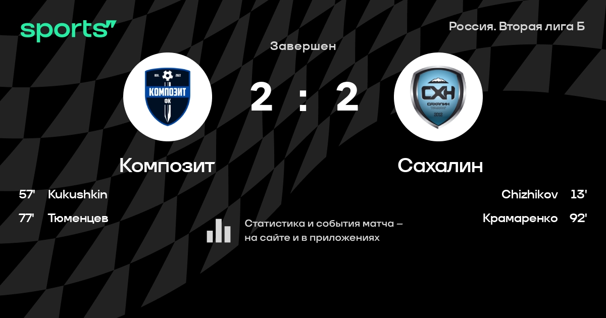 Результат прошлой игры в турнире «Вторая лига»: Химки-М – Сахалин 1:0. После 24 туров Сахалин набирает 32 очков и занимает 8 место в турнире. Лучший бомбардир команды – K. Mogel: он забил 5 в 21 матчах. Сахалин проигрывает в 3 последних матчах в рамках турнира «Вторая лига». В 3 последних матчах в турнире «Вторая лига» Сахалин обязательно забивает. Сахалин пропускает в 5 последних матчах в турнире «Вторая лига». В последних 5 играх Сахалин забивает 2 голов. В последних 5 играх Сахалин пропускает 5 голов.