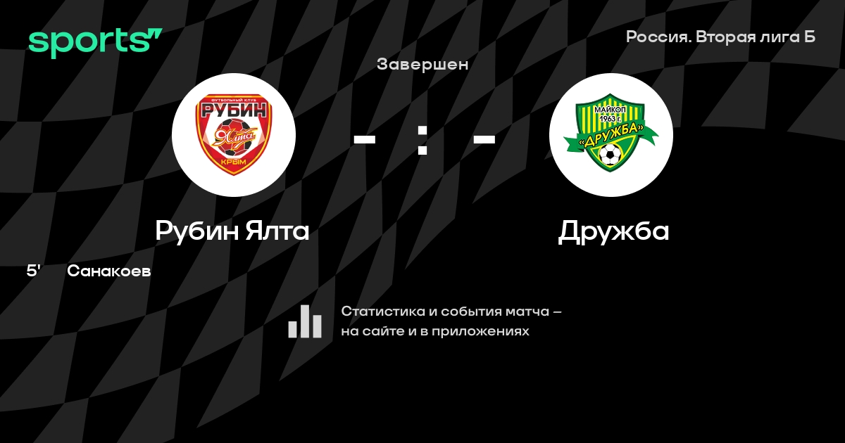 Результат прошлой игры в турнире «Вторая лига»: Нарт Черкесск – Рубин Ялта 0:3. После 29 туров Рубин Ялта набирает 55 очков и занимает 3 место в турнире. Лучший бомбардир команды – Вадим Зубавленко: он забил 15 в 26 матчах. В 6 последних матчах в турнире «Вторая лига» Рубин Ялта обязательно забивает. В последних 5 играх Рубин Ялта забивает 12 голов. В последних 5 играх Рубин Ялта пропускает 5 голов.