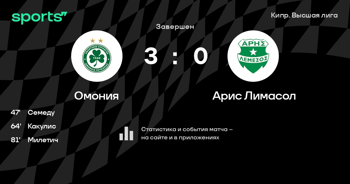 Омония – Арис Лимасол: Арис Лимасол забивает в 8 последних матчах против этого соперника