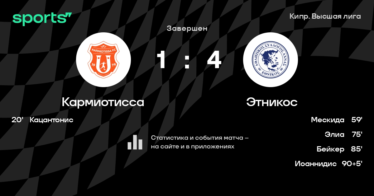 Кармиотисса – Этникос: Этникос забивает в 16 последних матчах против этого соперника