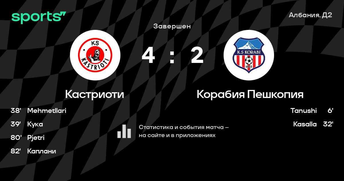 Кастриоти - Корабия Пешкопия: положение в турнире