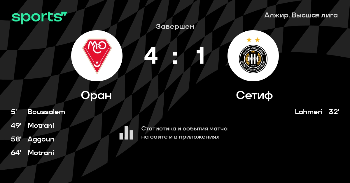 Оран – Сетиф: Сетиф забивает в 3 последних матчах против этого соперника