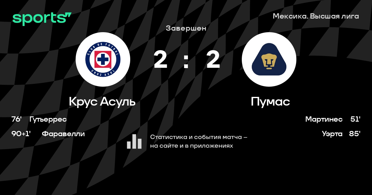 Крус Асуль – Пумас: Крус Асуль не проигрывает в 5 из 7 последних матчей против этого соперника