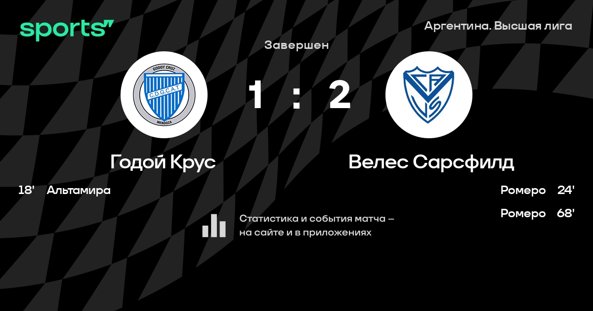 Годой Крус – Велес Сарсфилд: Велес Сарсфилд не проигрывает в 7 последних матчах против этого соперника