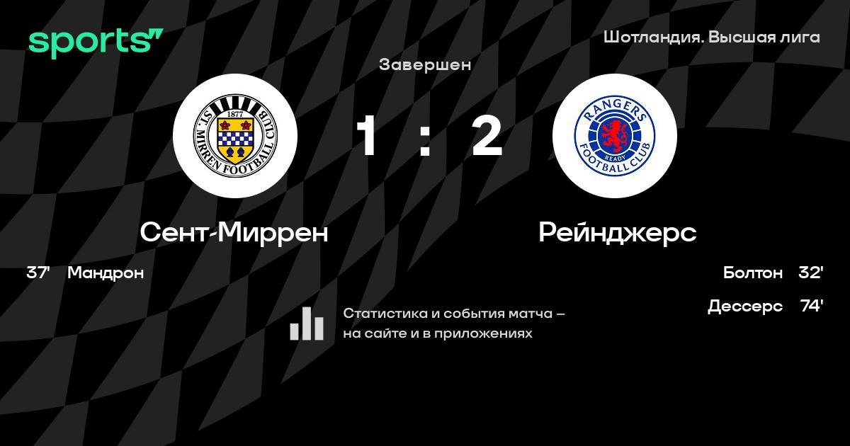 Сент-Миррен – Рейнджерс: Рейнджерс побеждает в 5 последних очных матчах