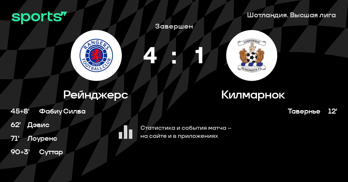 Рейнджерс – Килмарнок: Рейнджерс не проигрывает в 8 из 10 последних матчей против этого соперника