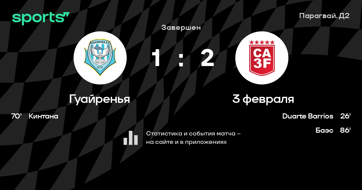 Гуайренья – 3 февраля: 3 февраля забивает в 4 последних матчах против этого соперника
