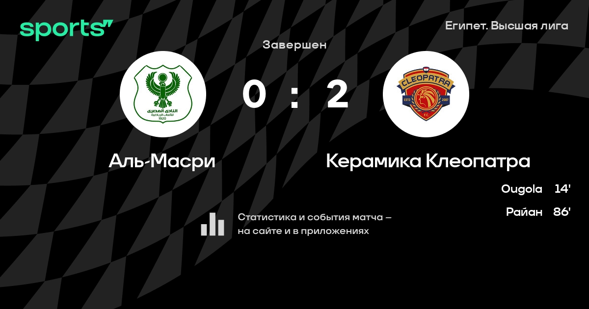 Аль-Масри – Серамика Клеопатра: Серамика Клеопатра забивает в 7 последних матчах против этого соперника