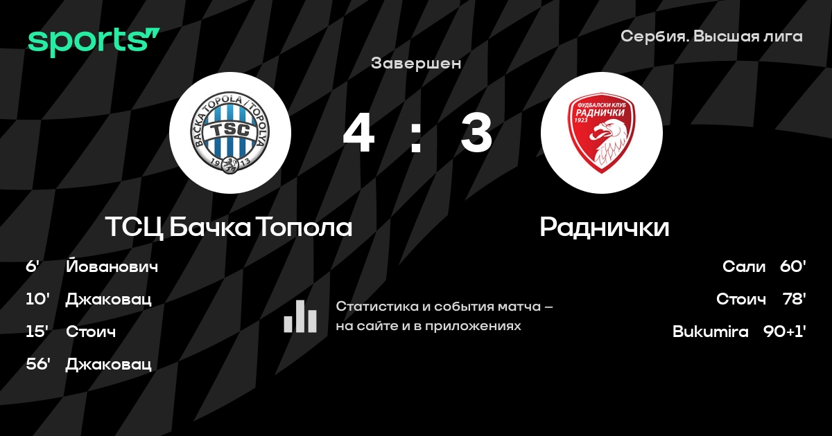 ТСЦ Бачка Топола – Раднички: ТСЦ Бачка Топола не проигрывает в 12 последних матчах против этого соперника