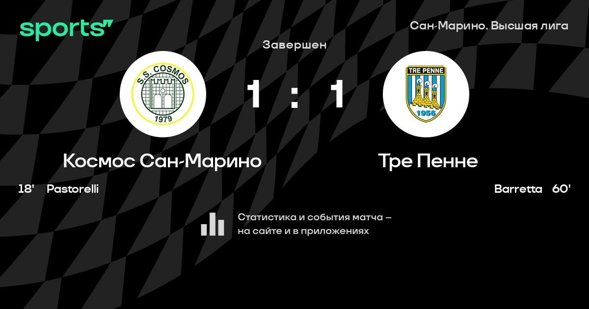 Космос Сан-Марино – Тре Пенне: Тре Пенне забивает в 5 последних матчах против этого соперника