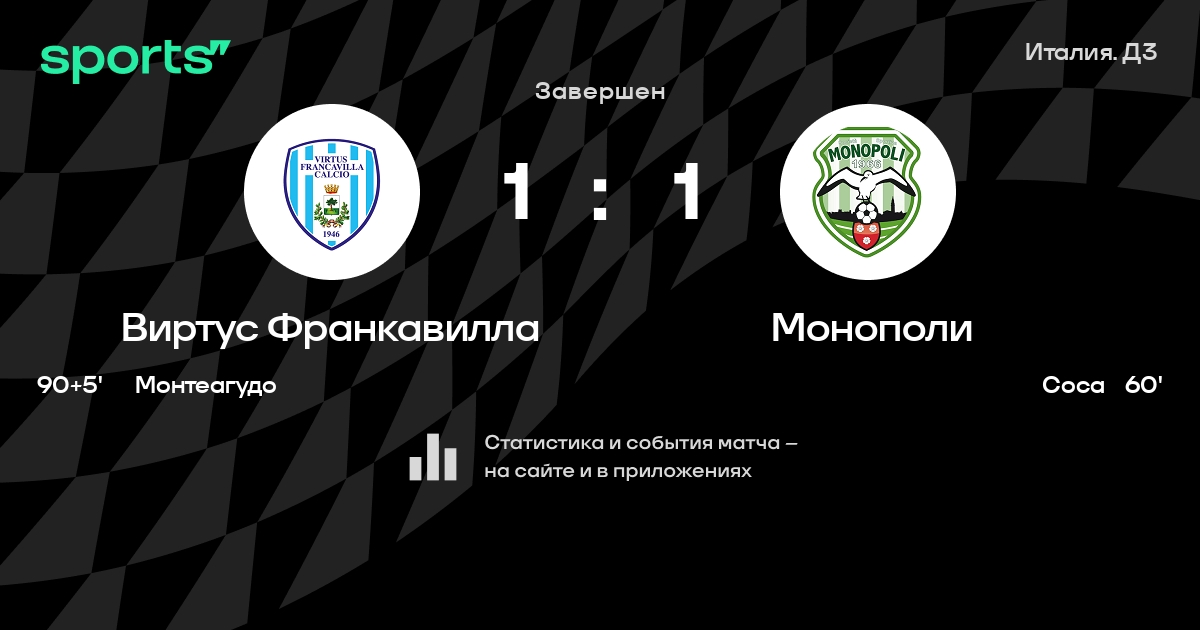 Виртус Франкавилла – Монополи: Монополи не проигрывает в 5 из 7 последних матчей против этого соперника