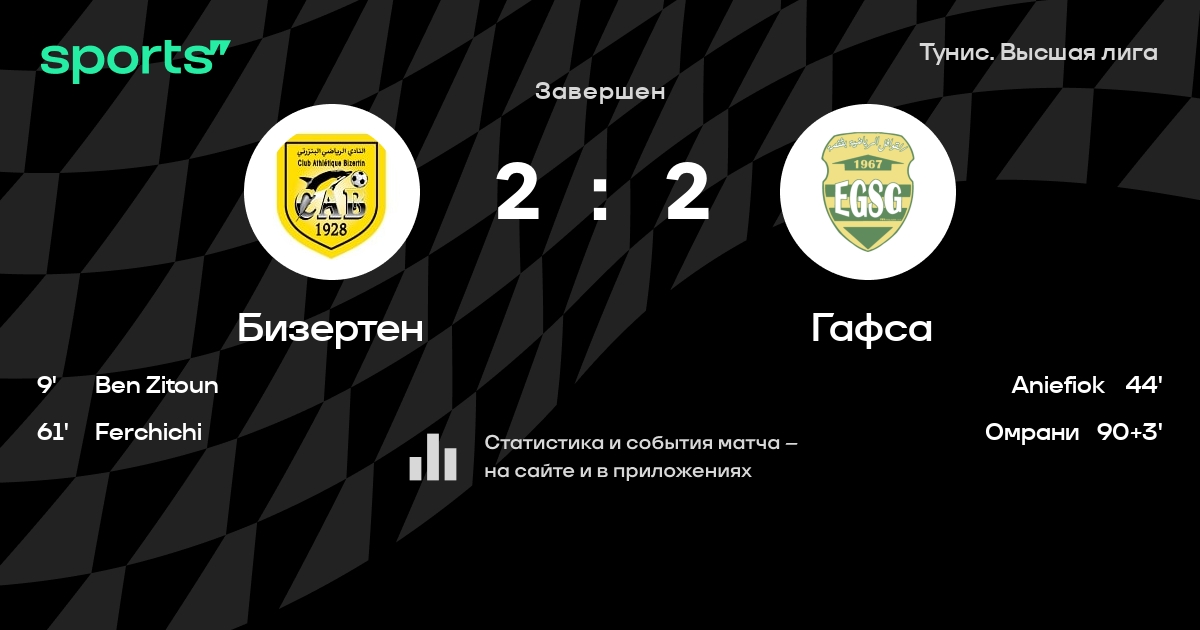 Бизертен – EGS Gafsa: Бизертен не проигрывает в 7 из 9 последних матчей против этого соперника