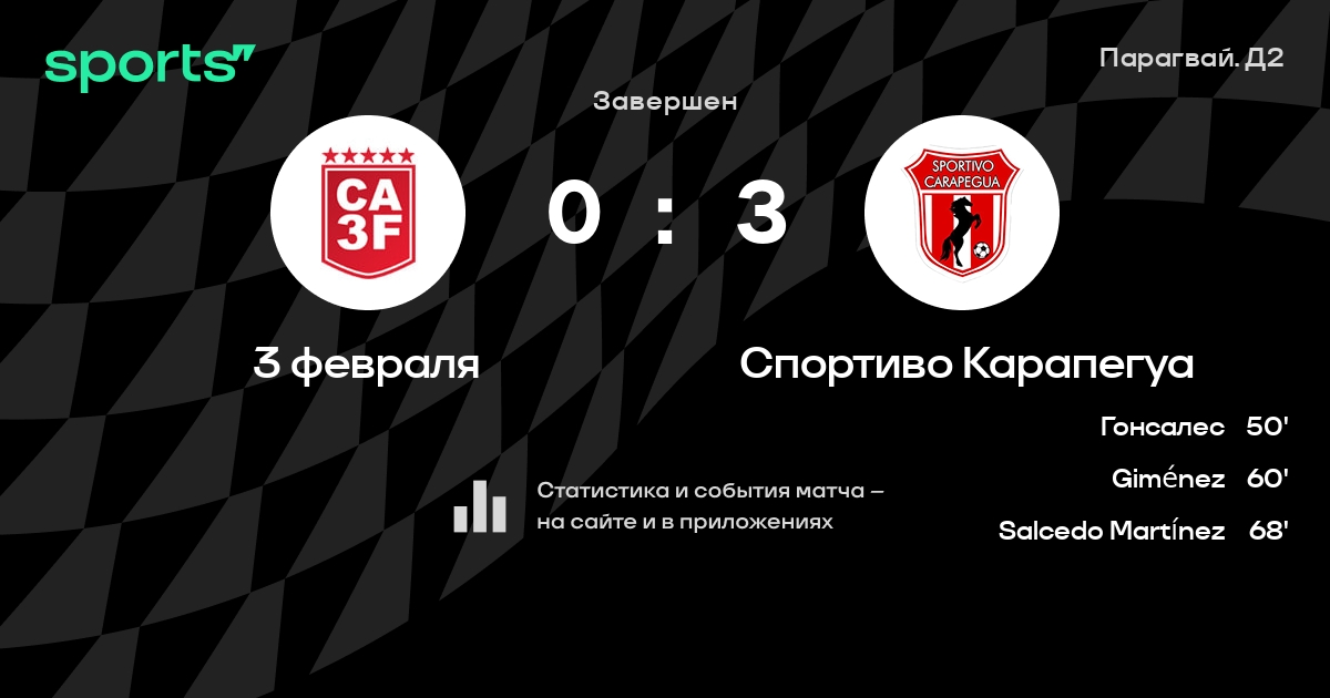 3 февраля – Спортиво Карапегуа: Спортиво Карапегуа забивает в 4 последних матчах против этого соперника