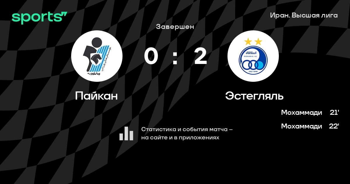 Пайкан – Эстегляль: Эстегляль не пропускает в 0 из 8 последних матчей против этого соперника