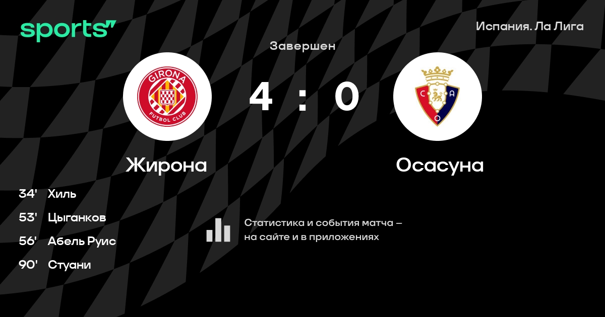 «Жирона» разнесла «Осасуну» – 4:0! Забили Хиль, Цыганков, Руис и Стуани