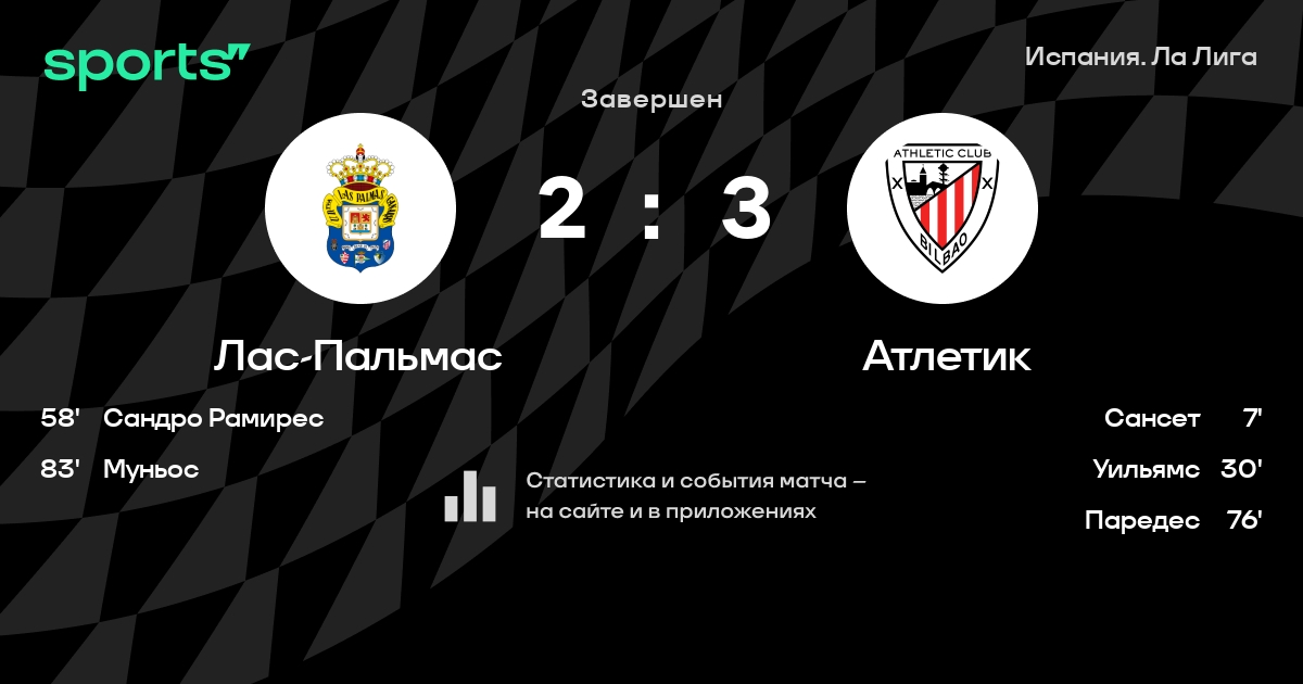 Агирресабала - Берчиче, Паредес, Вивиан, Де Маркос - Руис де Галаррета, Хаурегисар, Сансет, Н. Уильямс, И. Уильямс - ГурусетаЗапасные: Падилья, Бойро, Горосабель, Лекуэ, Нуньес, Унаи Гомес, Эррера, Прадос, Весга, Беренгер, Джало, Серрано