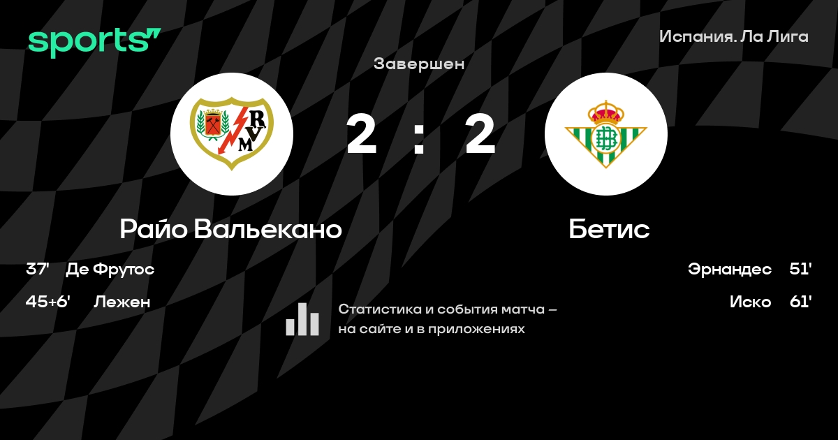 Райо Вальекано – Бетис: Райо Вальекано забивает в 10 из 12 последних матчей против этого соперника