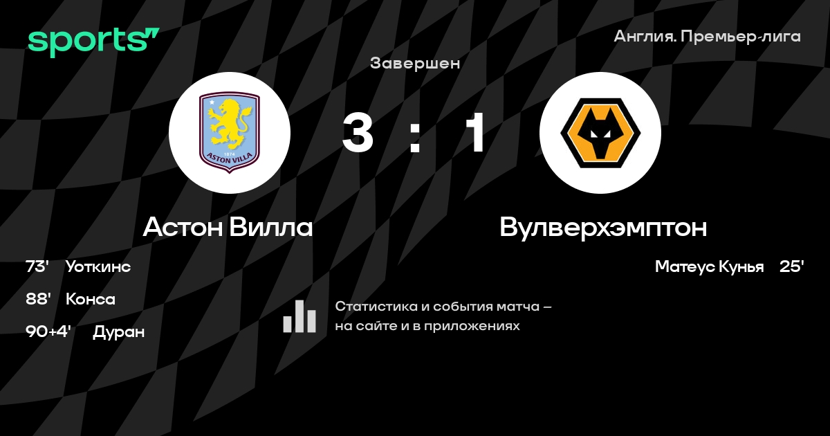 Трансляция Астон Вилла - Вулверхэмптон