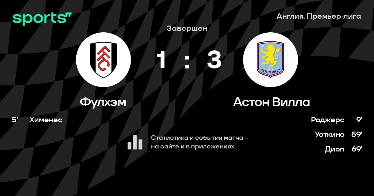 Мартинес - Динь, Пау Торрес, Диего Карлос, Кэш - Тилеманс, Онана, Рэмзи, Роджерс, Бэйли - УоткинсЗапасные: Госи, Конса, Матсен, Баркли, Буэндиа, Камара, Макгинн, Дуран, Филоджин-Байдейс