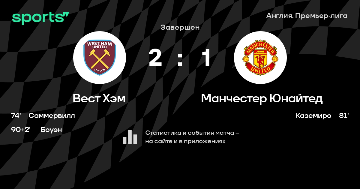 Результат прошлой игры в турнире «Премьер-лига»: Тоттенхэм – Вест Хэм 4:1. После 8 туров Вест Хэм набирает 8 очков и занимает 16 место в турнире. Лучший бомбардир команды – Джеррод Боуэн: он забил 3 в 10 матчах. В 3 последних матчах в турнире «Премьер-лига» Вест Хэм обязательно забивает. Вест Хэм пропускает в 6 последних матчах в турнире «Премьер-лига». В последних 5 играх Вест Хэм забивает 7 голов. В последних 5 играх Вест Хэм пропускает 14 голов.