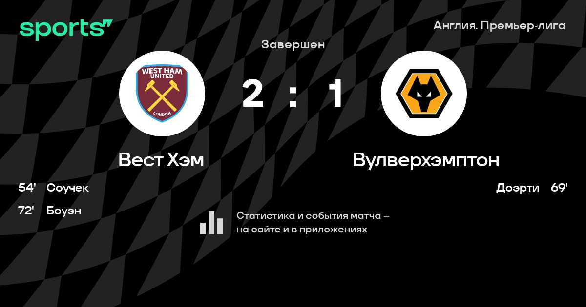 Чемпионат Англии. «Вест Хэм» победил «Вулверхэмптон»