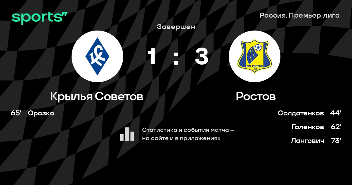 Крылья Советов – Ростов: Крылья Советов не проигрывает в 5 из 7 последних матчей против этого соперника дома