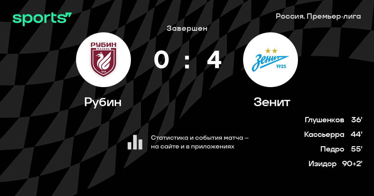 Рубин – Зенит: Зенит забивает в 9 из 11 последних матчей против этого соперника