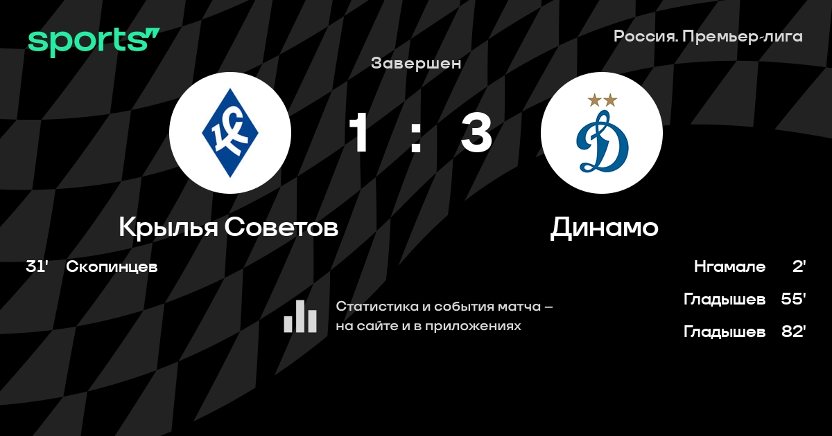 Крылья Советов – Динамо: Динамо побеждает в 5 последних очных матчах