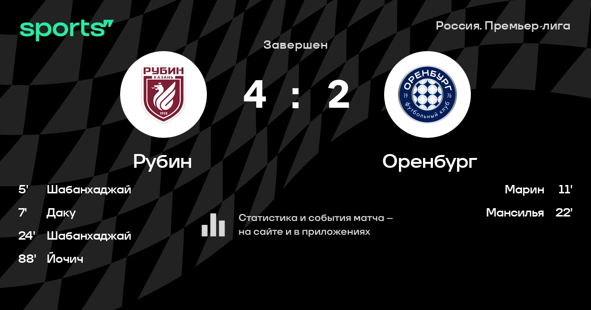 Рубин – Оренбург: Оренбург забивает в 4 последних матчах против этого соперника