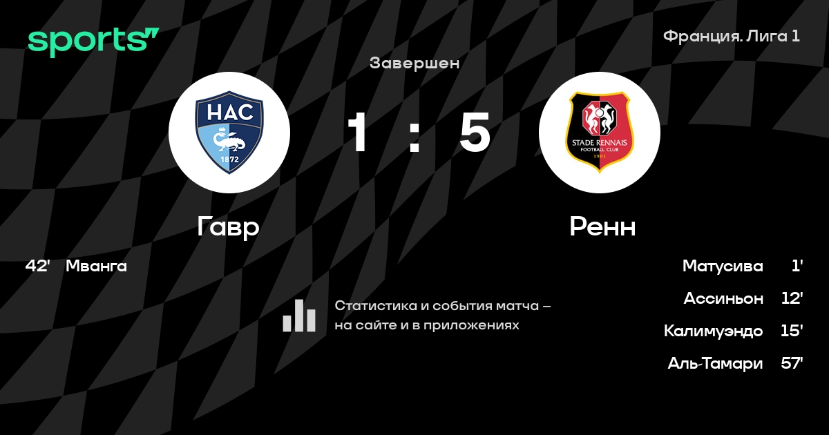 Матусива набрал 14 очков за 1+2 с «Гавром». Полузащитник «Ренна» забил впервые в сезоне