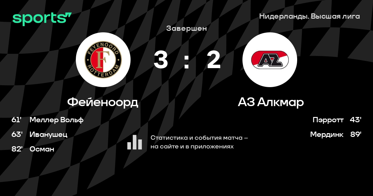 Результат прошлой игры в турнире «Эредивизи»: Фейеноорд – Аякс 0:2. После 10 туров Фейеноорд набирает 19 очков и занимает 4 место в турнире. Лучший бомбардир команды – Энтони Миламбо: он забил 6 в 13 матчах. В последних 5 играх Фейеноорд забивает 12 голов. В последних 5 играх Фейеноорд пропускает 5 голов.