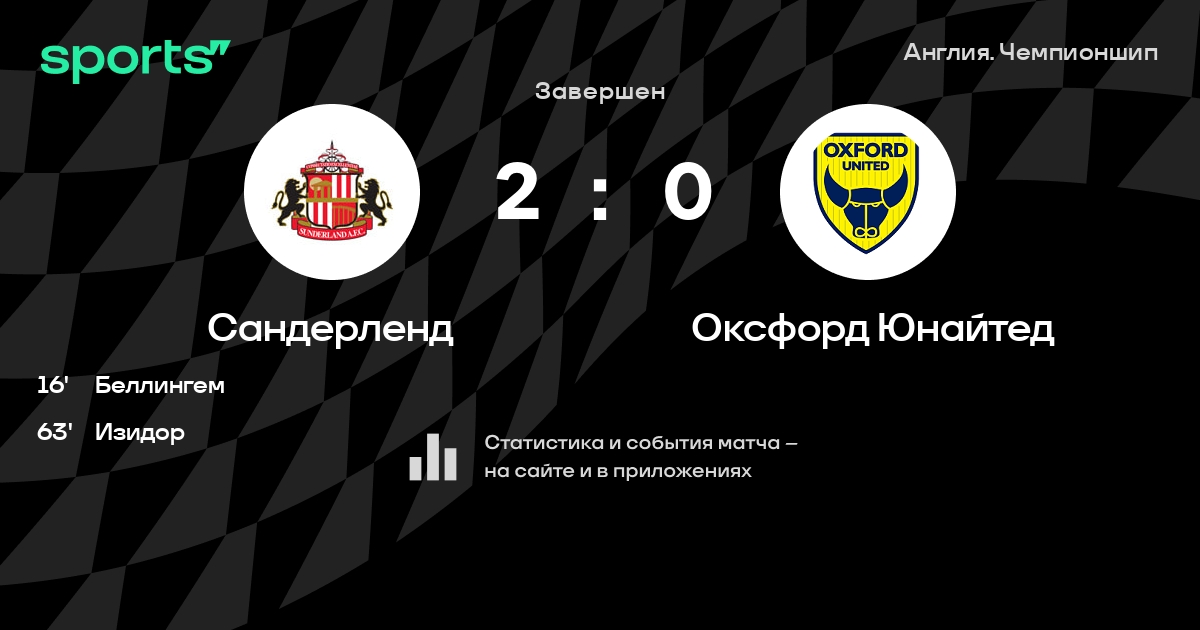 Трансляция Сандерленд - Оксфорд Юнайтед