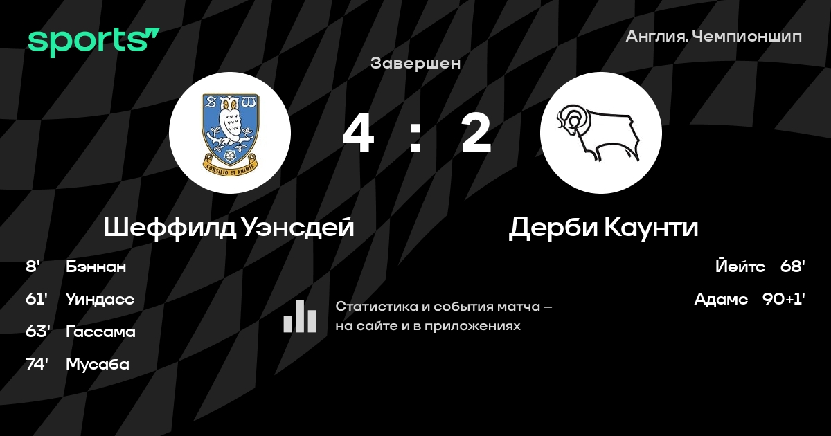 Трансляция Шеффилд Уэнсдей - Дерби Каунти