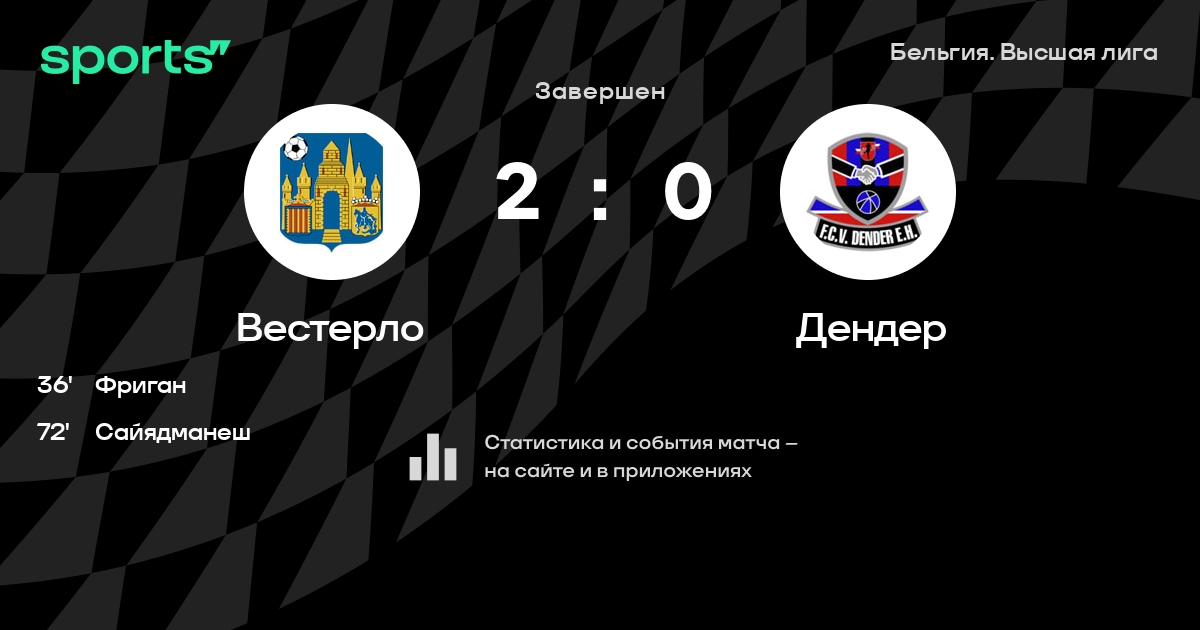 Результат прошлой игры в турнире «Высшая лига»: Дендер – Мехелен 2:5. После 12 туров Дендер набирает 16 очков и занимает 7 место в турнире. Лучший бомбардир команды – M. Berte: он забил 3 в 11 матчах. В последних 5 играх Дендер забивает 5 голов. В последних 5 играх Дендер пропускает 8 голов.