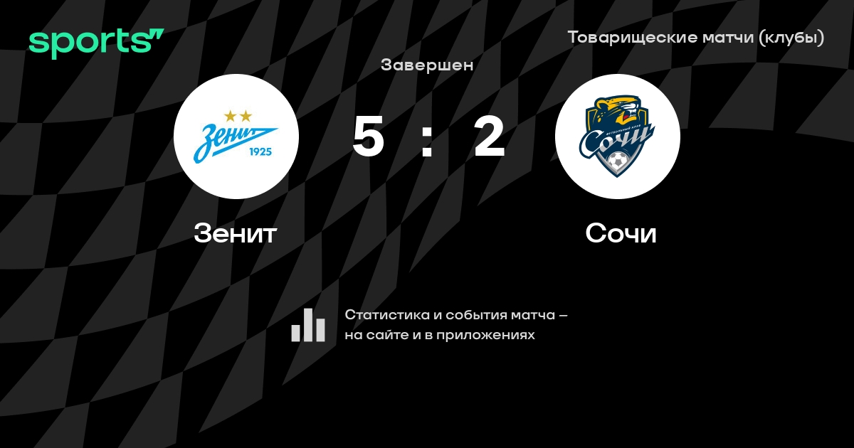 Сочи не выигрывает в 8 последних матчах в гостях в турнире «Товарищеские матчи (клубы)»