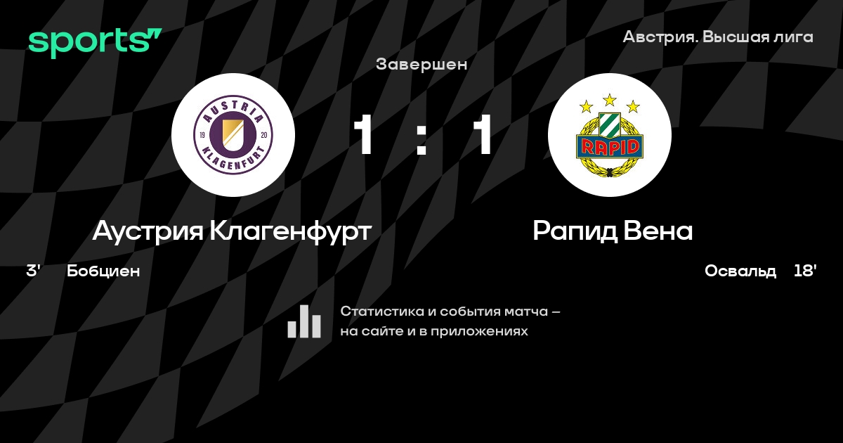 Аустрия Клагенфурт – Рапид Вена: Рапид Вена забивает в 6 последних матчах против этого соперника