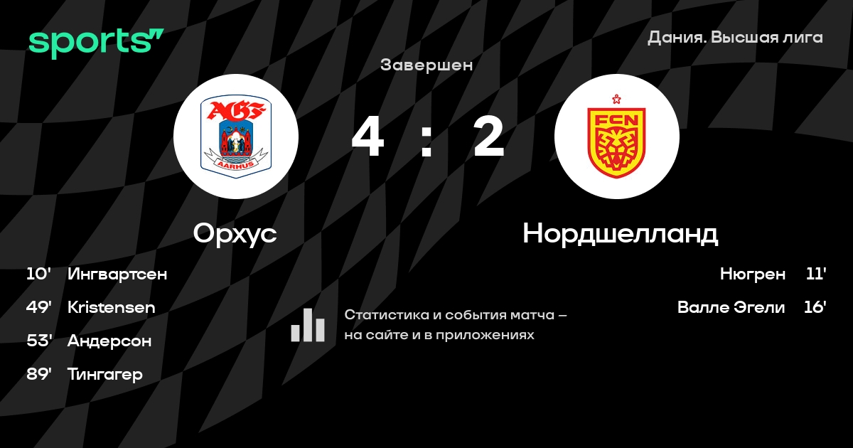 Хансен - Каль, Тингагер, Йенсен-Аббью - Линкс, Мадсен, Поульсен, Андерсон, Беймо - Мортенсен, Tobias BechЗапасные: Вальстедт, Андерсен, Callø Carstensen, Halsgaard, Пайбьерг, Bach, Brandhof, Gyamfi, Хеуген